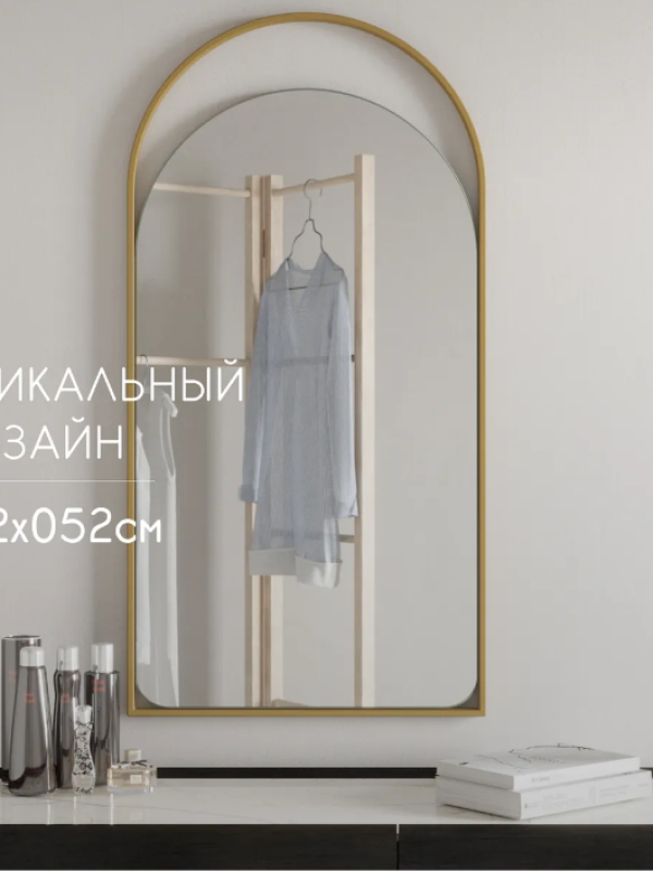 Дизайнерское арочное настенное зеркало Glass Memory Artful в металлической раме золотого цвета в Орле